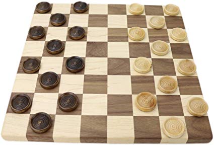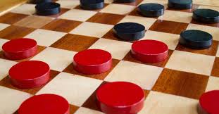 Draughts or Checkers is a group of strategy board games for two players that involves diagonal moves of uniform game pieces and captures by jumping over opponent pieces. From the standard starting position, both players can guarantee a draw or win with a play.